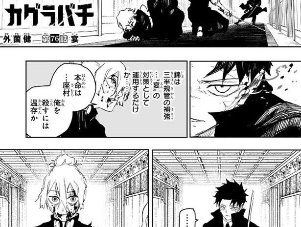 漫画 【ネタバレ】カグラバチ 第76話「宴」感想、ネタバレ 週刊少年ジャンプで連載中のカグラバチ 第76話のネタバレ、感想です。前回の記事はこちらです。妖刀三つ巴戦が始まり、いきなり座村清市は昼彦の首を斬り落とします。座村が飛宗の能力『雀(すざく)』を使用冒頭、妖刀には理論を越えた“本領”があり、理... 2025.04.21 2025.04.28 漫画
