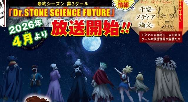 アニメ 【ネタバレ】アニメ 第4期 Dr.STONE SCIENCE FUTURE 第3クール 4月より放送開始 アニメ『Dr.STONE』第4期『Dr.STONE SCIENCE FUTURE』の、第3クールが2026年4月より放送決定、と公式から発表がありました。アニメ 第4期 Dr.STONE SCIENCE FUTURE 第3クール 2026年... 2026.01.06 アニメ