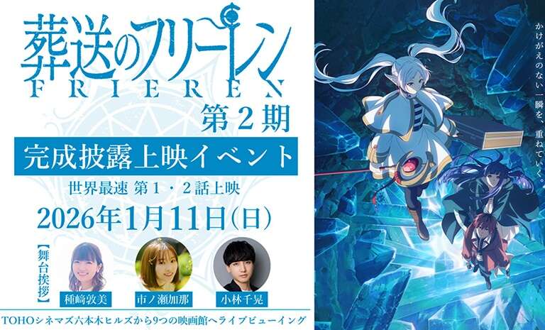 TVアニメ第2期 葬送のフリーレンの初回放送まで1ヵ月をきりましたが、1月11日(日曜)に第2期の完成披露上映イベントが開催される事が決定しました。