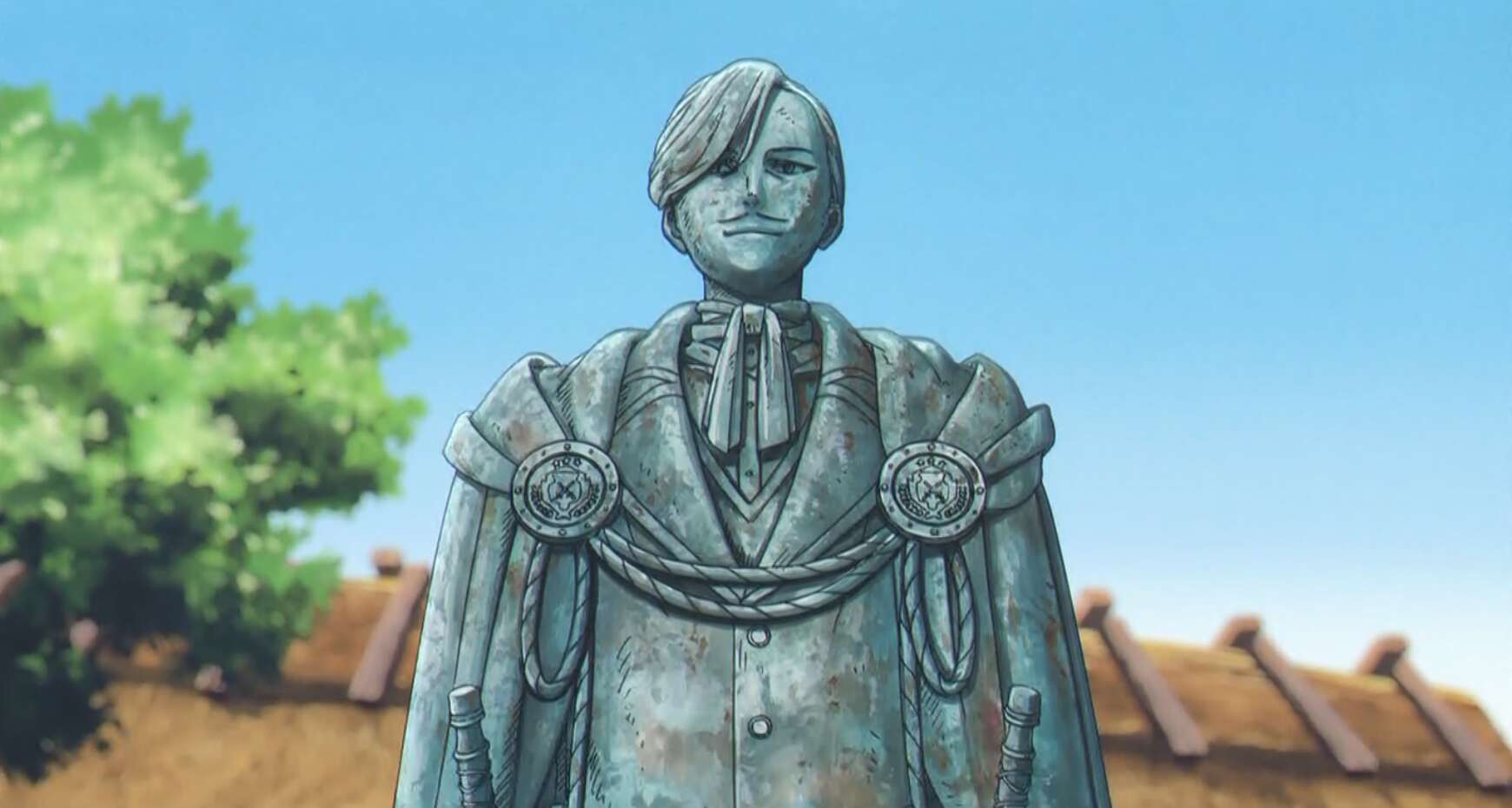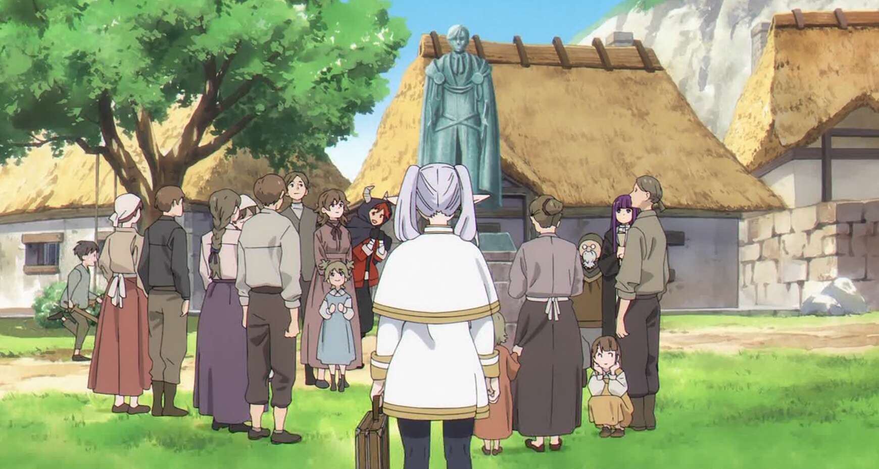 場面は現代に戻り、フリーレンは魔法で南の勇者の像を奇麗に磨き終わっています。フリーレンは綺麗になった南の勇者の像の周りに大勢の村人が集まっているのを見て、何が未来が見えるだ、ここの人達は覚えている、ちゃんと歴史に残っているよ、と心の中で南の勇者に語りかけます。