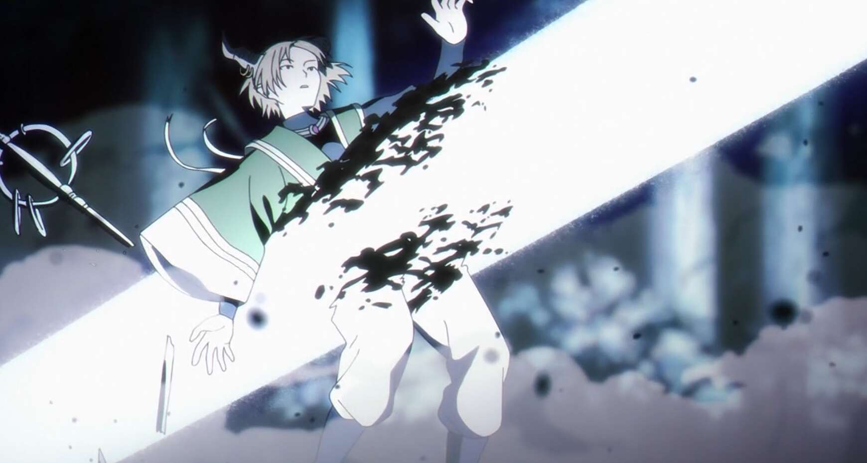 メトーデの相手・ゾリーダは堅実な戦い方をする魔族で、純粋に隙が無くさらに攻撃を旋風に変える魔法(メドロジュバルト)も使ってきます。フェルンと協力して打ち崩すのが最適解とメトーデは考えますが、霧の魔法の強力な魔力探知効果でフェルンと合流するのは難しそうです。ならば魔法の霧が晴れれば戦局が大きく動くと考えたメトーデは攻撃パターンを変え、魔法による攻撃でゾリーダを猛攻します。