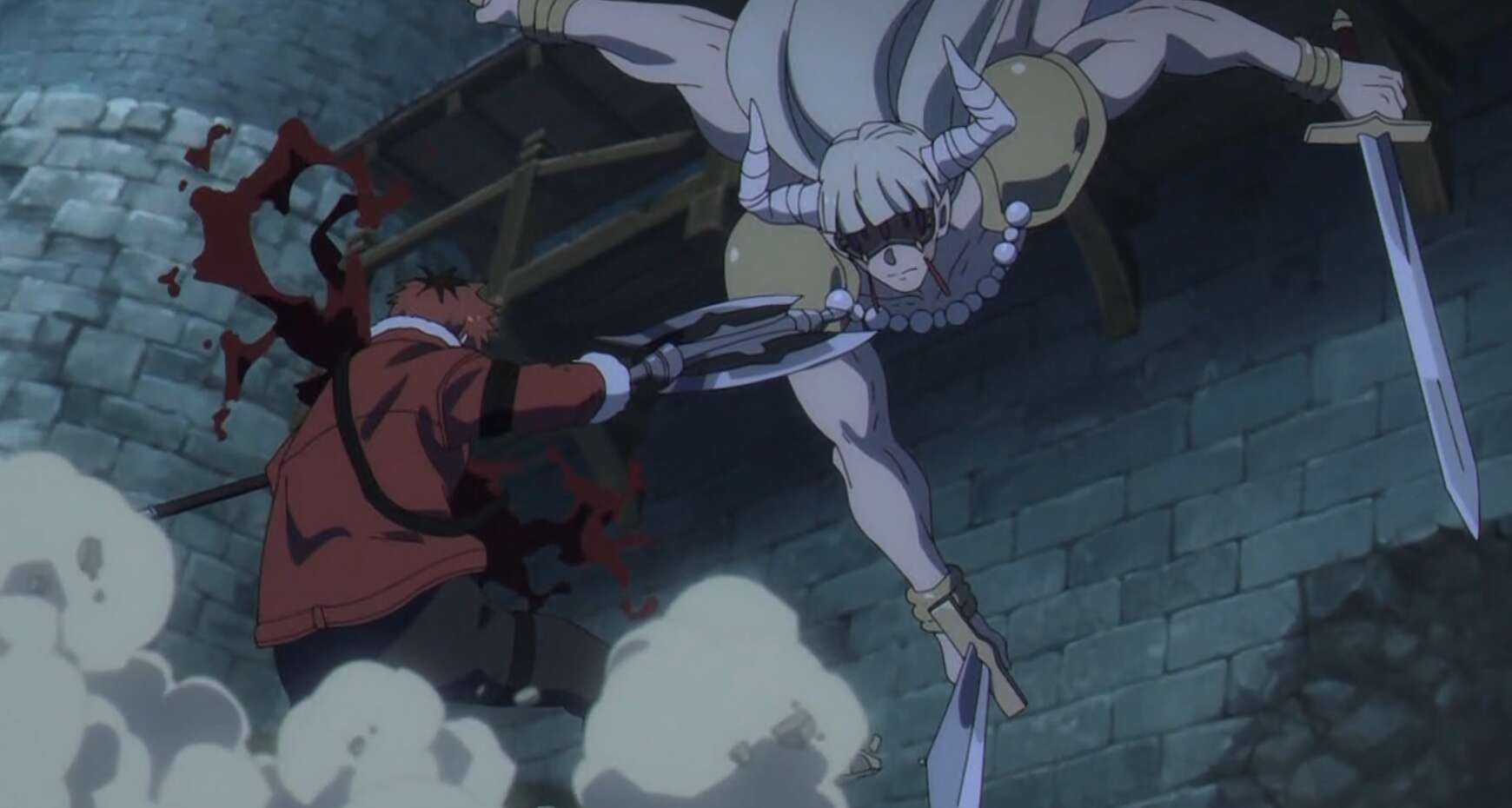 レヴォルテとシュタルク、ゲナウの戦いを大詰めで、二人は連携してレヴォルテの剣を1本ずつ破壊していき、ついに全ての剣を破壊します。