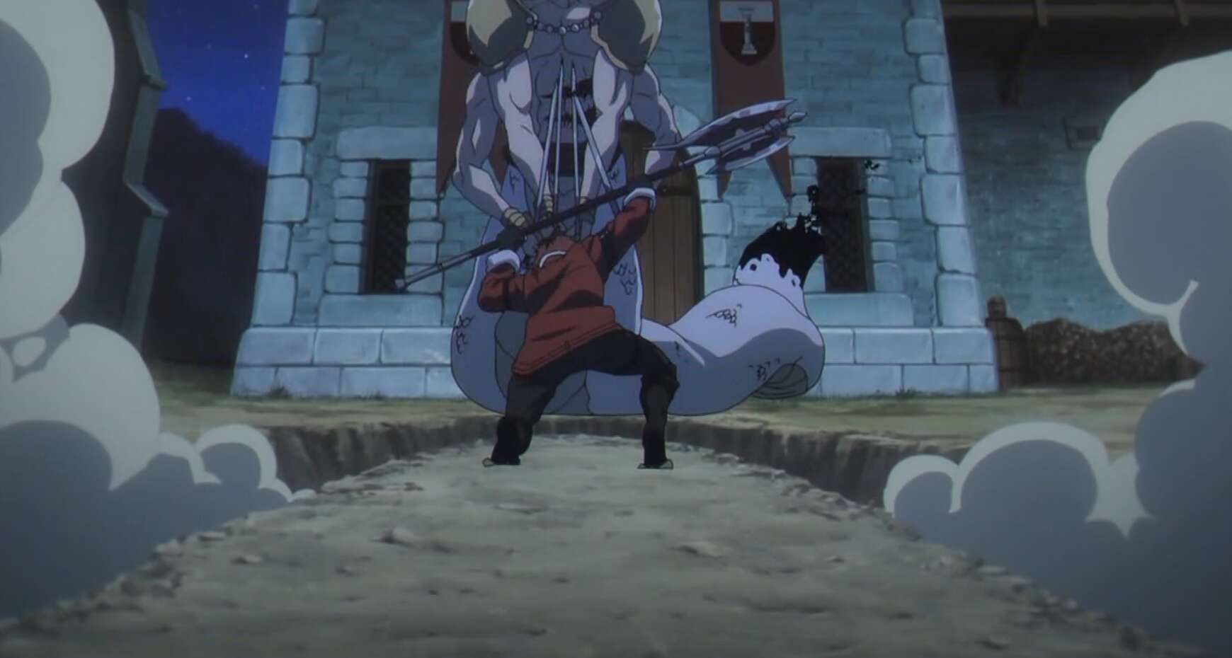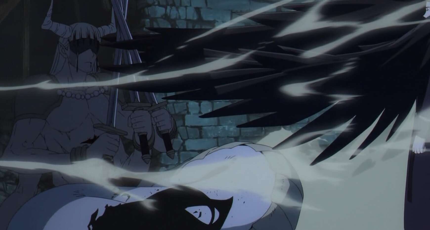 ゲナウは武器のなくなったレヴォルテに止めを刺そうとしますが、レヴォルテは素手でシュタルクとゲナウを攻撃し、シュタルクとゲナウの腹を貫通させる重傷を負わせます。