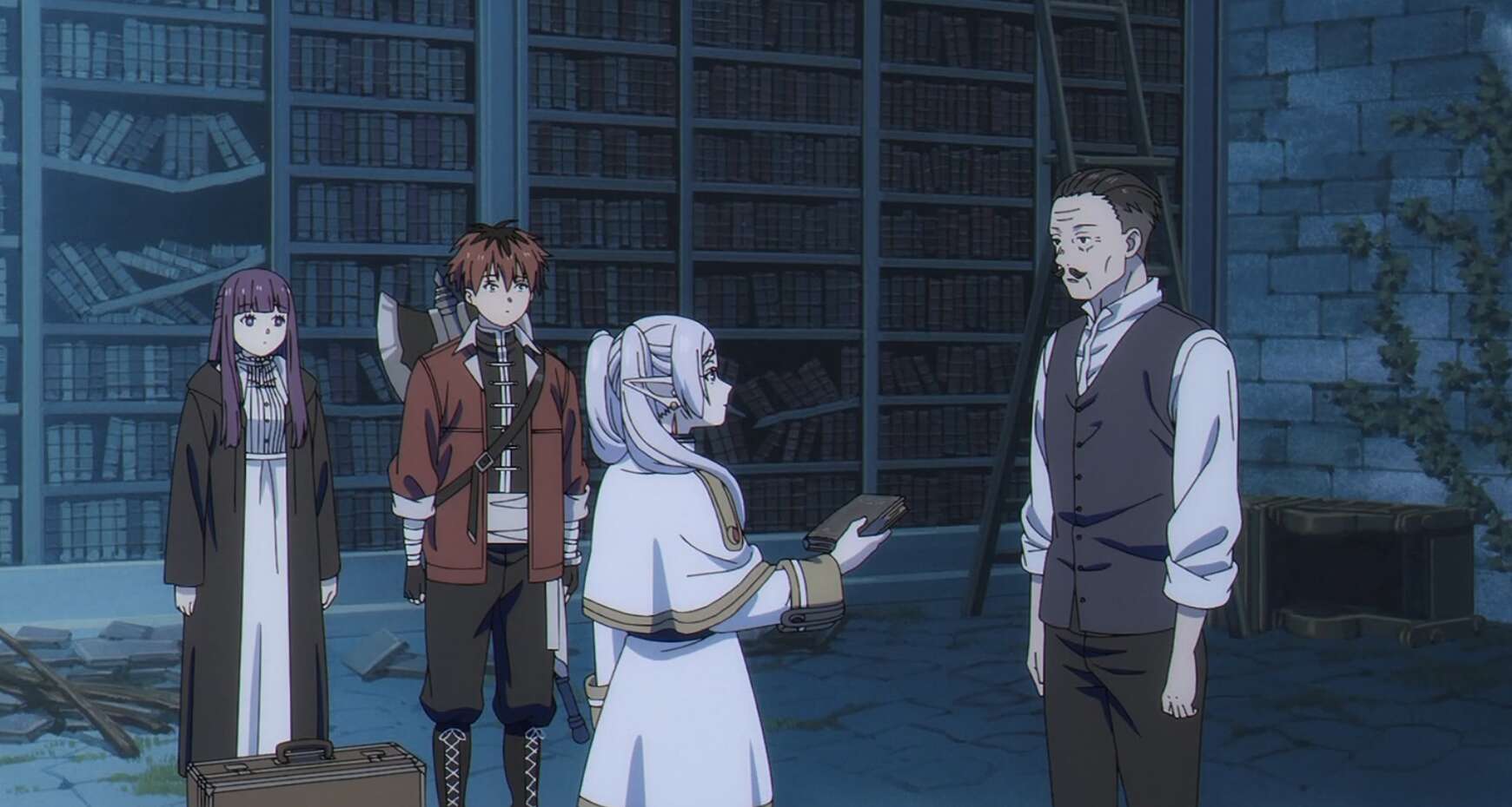 渡し船の男性は自伝を見るフリーレンの寂しそうな顔を見て、勇者一行のエルフの魔法使いだと気付き、ヒンメルの自伝はフリーレンが持っているように言います。それは大切な物なんだろう、お前が持っていろ、とフリーレンに言い、渡し船の男性は書庫には他にも価値のある本はいくらでもある、報酬はそれで十分すぎるさ、と言うと、フリーレン達を湖の対岸まで送ります。
