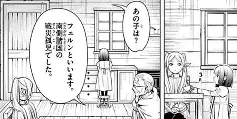 145話では、ゼーリエの予知夢の詳細が明らかになります。夢の中でゼーリエは未来を体験できるようできるようですが、その体験は時期や期間はランダムで、発動自体も極僅かな確立に委ねられるそうです。ゼーリエが持っていた未来視の魔法はこの予知夢以外は、一級魔法使いの特権として他の魔法使いに渡してしまっていて、この予知夢しか使えないそうです。一番使い道の無かった予知夢ですが、皮肉にもゼーリエの“寿命”が定まる事で十分実用に足る魔法になったそうです。この予知夢によれば舞踏会の宵の鐘が鳴る頃に、ゼーリエは死角から首を一閃され、殺されてしまうそうです。魔力探知の反応が一切無かったことから、相手は戦士とゼーリエは推測し、さらに敵も不完全ながら未来視の魔法が使えるとさらにゼーリエは推測します。魔法が使えるなら影なる戦士の可能性は低そうですが、未来視に関する魔法の大半は南側諸国の戦乱で滅びた一族に継承されていたそうで、さらに影なる戦士のレーヴェが南側諸国に終わり無き戦乱を齎した大逆の魔女ミーヌスを討ち取っているので、南側諸国繋がりで何か秘密がありそうな気もします。また可能性はかなり薄そうですが、フェルンも南側諸国の戦災孤児で南側諸国出身のはずなので、もしかしたら何か未来視に関する繋がりがあるのかもしれません。