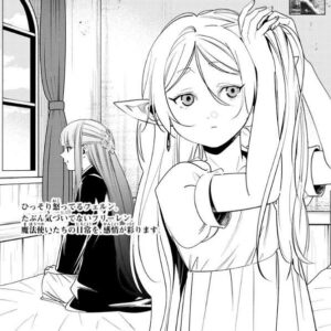 一方、フリーレンは迷宮を潜っていた途中で見つけた宝箱の前で座り込んでいます。フリーレンは、この魔力…魔導書かも…、と悩みます。しかし、フェルンは宝箱を判別する魔法(ミークハイト)の結果から、ミミックだと断定します。
