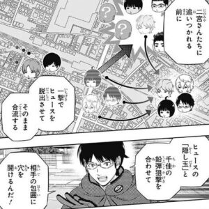 次回、いつまでも意地になっている男子たちと女子たちを仲直りさせるため、三玖は男女の代表を屋上に呼び出します。
