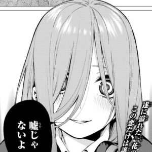 期末試験も終わり全員赤点回避出来ましたが、その直後二乃から好きだと告白されます。バイクで五つ子たちの打ち上げ場所に合流しますが、告白したにもかかわらず風太郎は全くの無反応に見えて、何も感じていないように見えます。風太郎もバイトに戻ってしまい後で聞くことにして、五つ子全員ケーキでお祝いです。