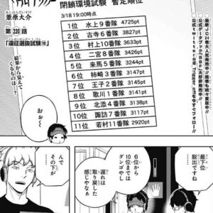 秤金次の説得に成功した虎杖達は、早速各々が出向く結界の割り振りを考えようとしますが、突然コガネが総則9のルール追加をアナウンスします。プレイヤーは他プレイヤーの情報を参照できるというルールが追加され、虎杖達はコガネからプレイヤーの情報を参照することが出来るようになります。