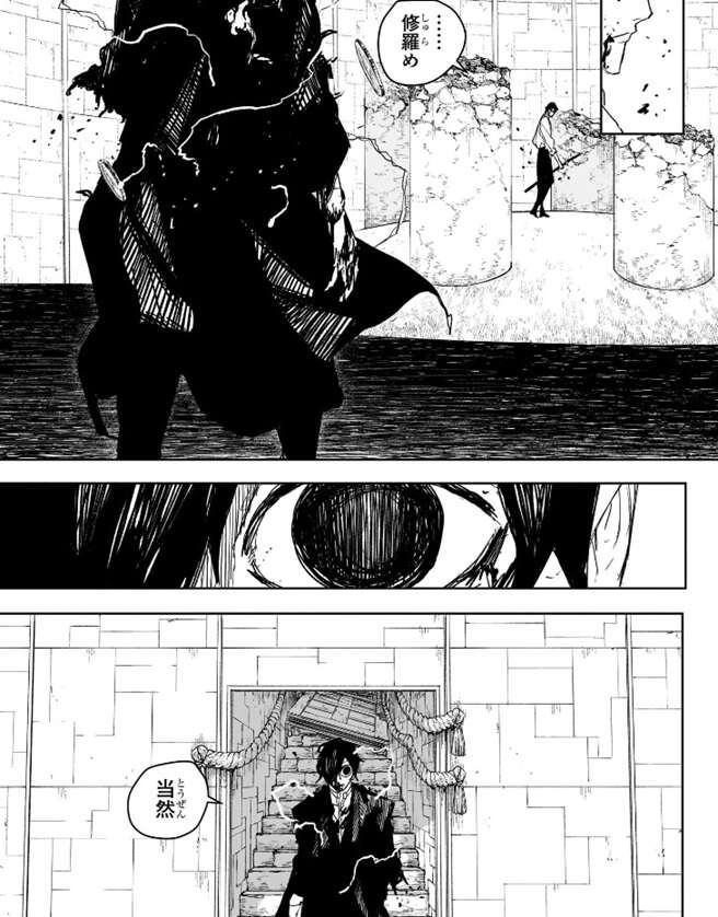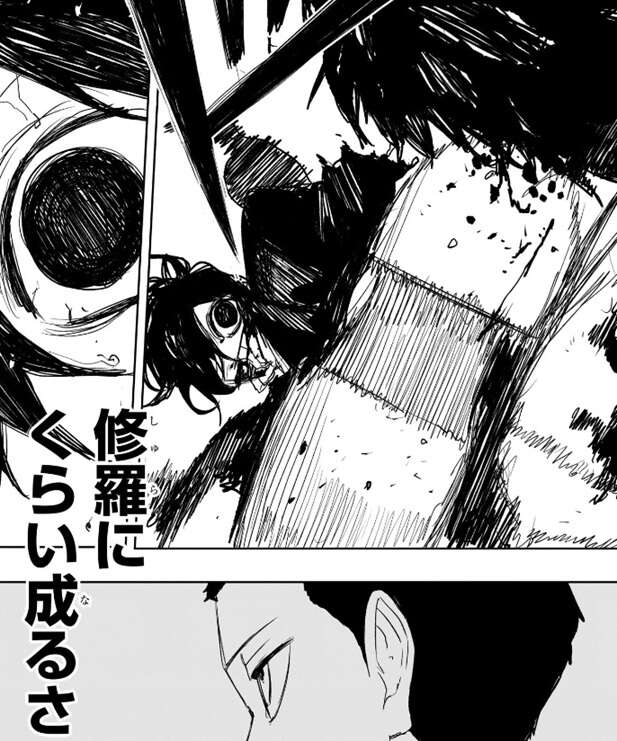 そこに生死不明だった薊が最下層の地下牢獄に到着します。片腕のない薊を見て幽は、…修羅め、とつぶやきますが、薊は、当然、と答えます。