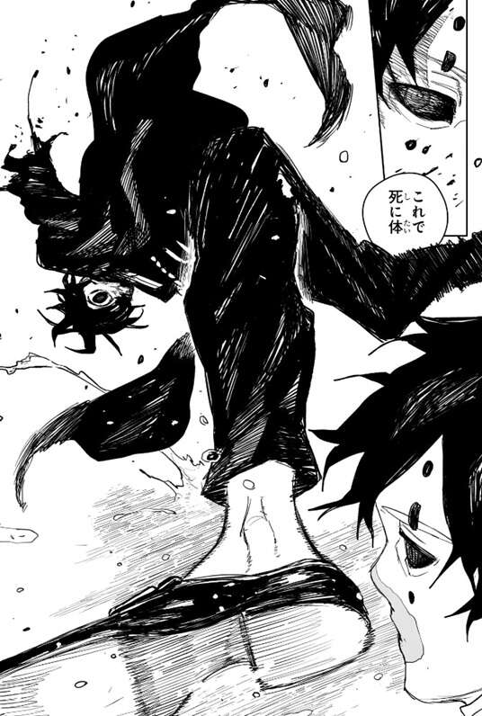 両腕のなくなった薊に、これで死に体、とつぶやきますが、薊は蹴りで幽を攻撃します。