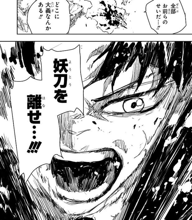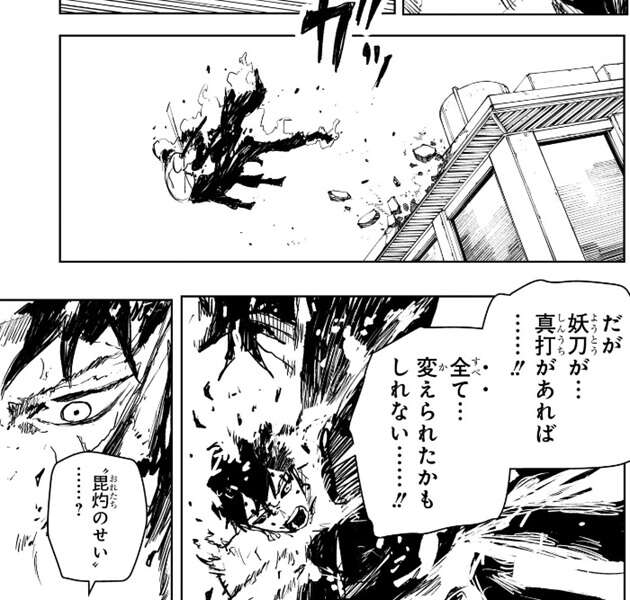 しかし妖刀が、真打があれば全て変えられたかもしれない、と幽は主張し、チヒロの言う“毘灼(おれたち)のせい”を否定します。