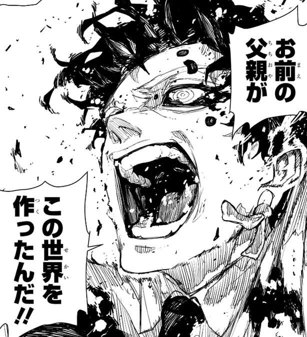 妖刀を封印したのは誰だ、悪を滅する手段を持ちながら姿を消したのは誰だ、と幽は言いチヒロの父親である国重を批判、お前の父親がこの世界を作ったんだ!!と、幽はチヒロに叫びます。そして、幽は蜈を使用してチヒロを向かいのビルへと吹っ飛ばします。