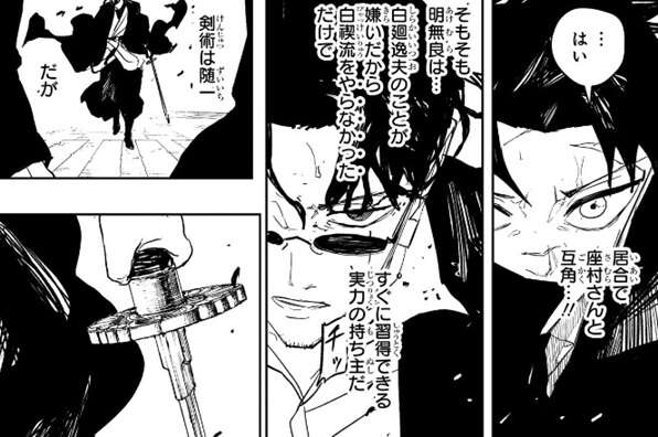 座村は居合白禊流で剣聖を斬ろうとしますが、剣聖と座村の剣のスピードは互角のようで座村の刃は弾かれてしまいます。