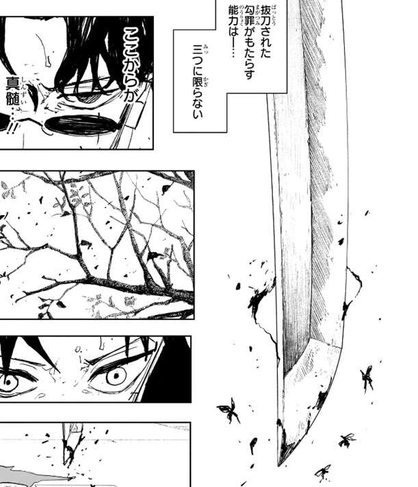 さらに抜刀された勾罪がもたらす能力は三つに限らず、ここからが妖刀真打「勾罪」の神髄と気を改めます。