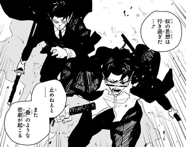 座村は、奴の思想は行き過ぎだ…!!止めねえと……また“蠱”のような悲劇が起こる、とチヒロに言いますが、剣聖はチヒロにやめておけと忠告します。