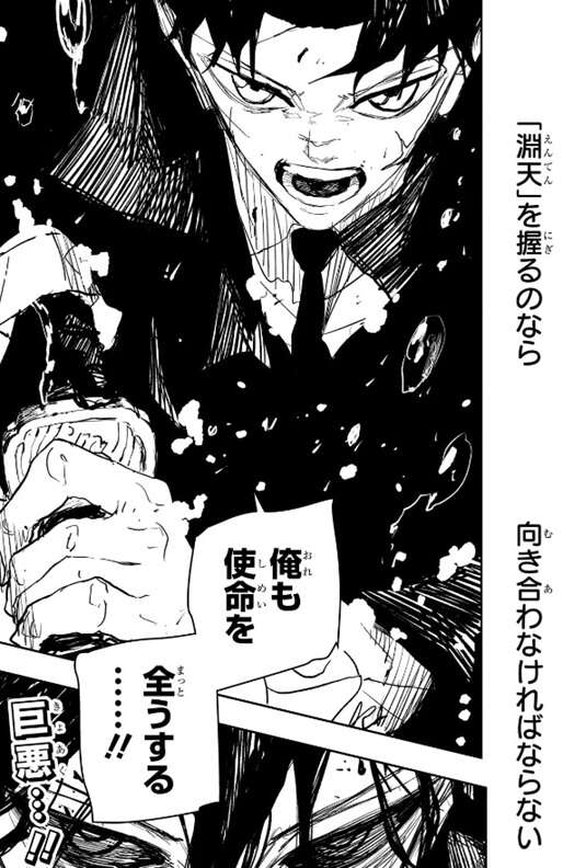 淵天を握るのなら向き合わなければならない、と心の中でつぶやき、俺も使命を全うする……!!と、剣聖に叫びます。