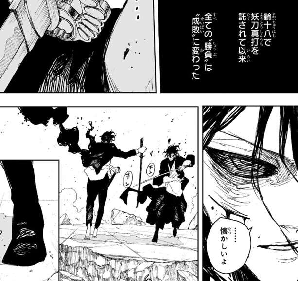 齢十八で妖刀真打を託されて以来、剣聖にとって全ての“勝負”は“成敗”に変わっていました。剣聖は座村と生身での斬り合いとなり、……懐かしいよ、とつぶやきます。
