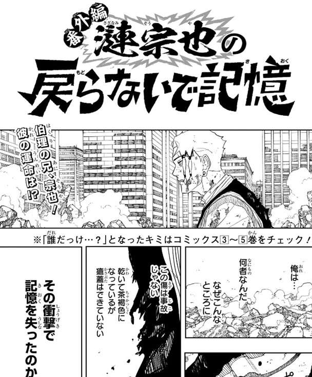 宗也は自分が何者なのか分からず、なぜ傷を負って出血しているのかも分かっていません。ただ、この傷は事故ではないという事は何となく分かるようで、宗也は自分の体の状態から戦闘の衝撃で記憶を失ったのだと分析し、さらに他の記憶も何とか思い出そうとします。