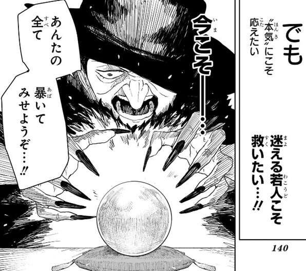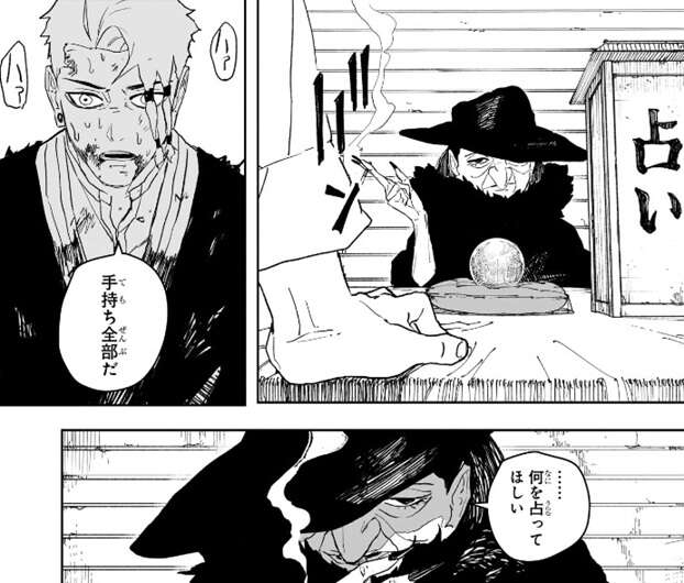 宗也は、これを思い出せなければ俺は俺じゃない…!!と考え、刺激を得て徐々にでも記憶を取り戻そうとします。所持金はわずかしかありませんが、俺には商人の血が流れている、一本の藁だって大金に変えられる、これだけあれば不可能なことはない、と宗也は考えますが、宗也が選んだのは何故か占いでした。占い師になけなしの全財産を渡しますが、お前の中に流れている商人の血はどうした?