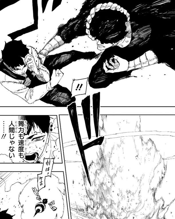 しかし、戦闘員は空空によって生み出された圧力を強引に突破し、真城にパンチを浴びせます。膂力も速度も人間以上のようで、真城は戦闘員の強さに驚きますが、さらに咼楽による攻撃が真城を襲おうとします。