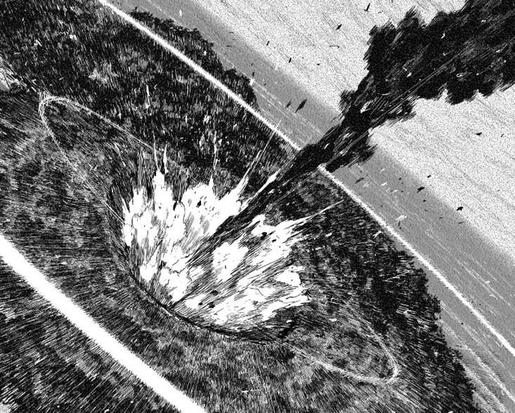 亜利雨のみとなった場所に、バカでかい鉄の塊が激突し、杁島全体に衝撃が走ります。