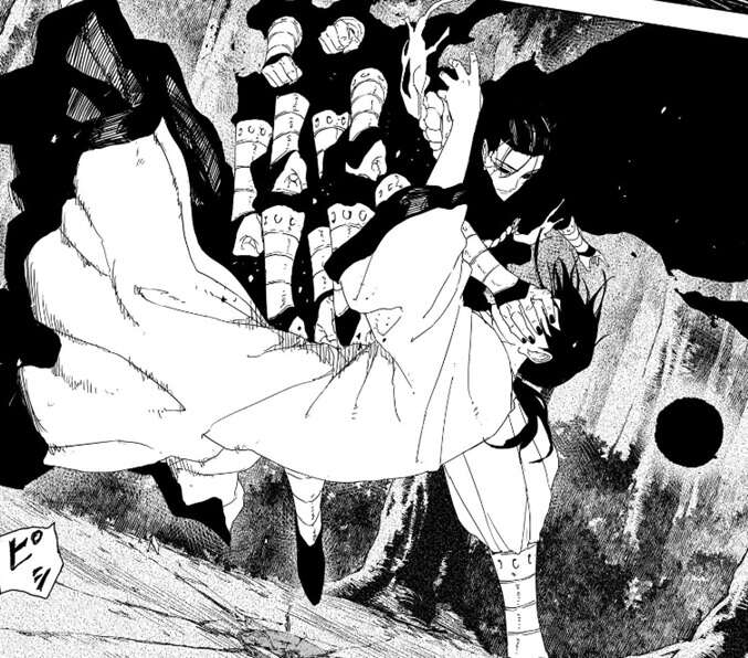 第120話では、杁島での戦闘が激化、亜利雨が栖(スミカ)によって生み出した空間では妖術が無効化され、ヒロトの虚地の重力や柴の瞬間移動が無効化されてしまいます。さらに亜利雨の空間では毒による感覚の麻痺もあるようで、ヒロトや柴は体術でも後れをとり亜利雨に吹っ飛ばされます。妖術局側が圧倒的に不利かと思われましたが、妖術が無効なら物理で木っ端微塵にしようと真城は考え、第117話で爆破された甲鉄艦を真城が鉄の塊に圧縮し、ヒロトが虚地の重力で亜利雨にぶつけます。鉄の塊による物理での攻撃は亜利雨に効いたのか?亜利雨の生死は不明ですが、雰囲気的にはこれでまだ終わりそうもないので、来週の展開も目が離せません。