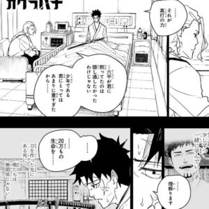 契約者のしがらみも、剣聖も蠱の可能性も、座村は全部ひとりで断ち斬る気なんだと分かり、漆羽は俺だけがあんたを追いかけ、あんたに食らいついてきた!!と、この状況を受け入れられずにいますが、漆羽は体を動かせません。神奈備職員は命滅契約が解かれ、18年間変形し固定され続けた神経が元に戻ろうとしているので、数日は体を動かせないと漆羽に言います。…なら誰が座村サンを止める…、と漆羽は言いますが、六平千鉱が対座村の部隊として出ると聞かされると、俺のことは上に報告するなと漆羽は神奈備職員に言います。