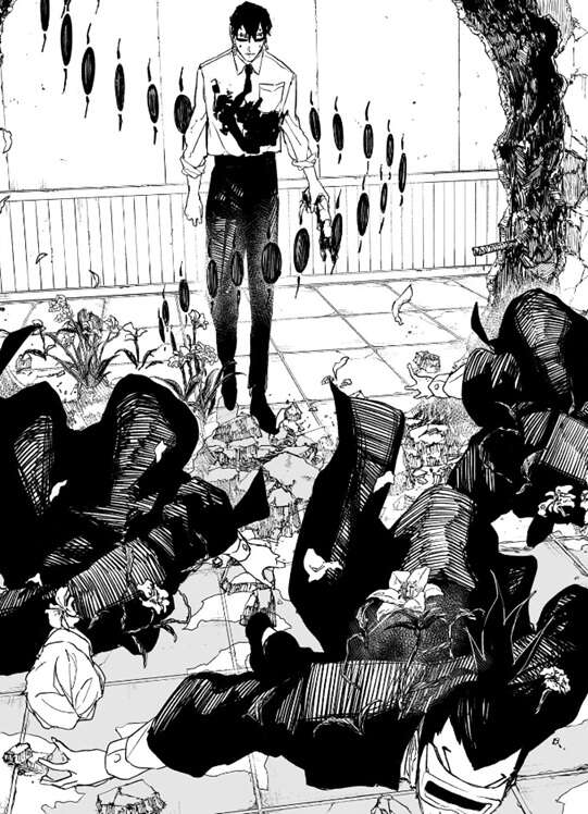 幽が通った後の通路や部屋には草花が生えていて、神奈備本部最下層の剣聖を監視している監視室の神奈備職員も全滅のようです。壊れた柱がいくつかある部屋に辿り着いた幽は、この下……、……そこにいるな、と剣聖の気配を感じます。ついに幽は剣聖を殺すのでしょうか?
