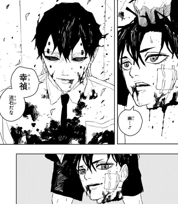 ここで幽がもう一人の“受け皿”を幸禎(ゆきさだ)と呼び、若い毘灼の男の名前が幸禎だと判明します。幽は幸禎を流石だと褒め、幸禎は首がまだとれたままですが笑顔で応えます。