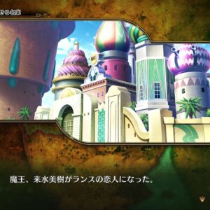 ランスと美樹は城のそうかを仲むつまじく手を繋ぎながら歩き、会話を楽しみます。ランスに対してラブラブ全快の美樹は繋いでいる手をブンブンと振り、ご機嫌にニコニコしています。