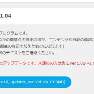 緊急アップデートのver1.04の記事です。ミスの修正内容のみです。