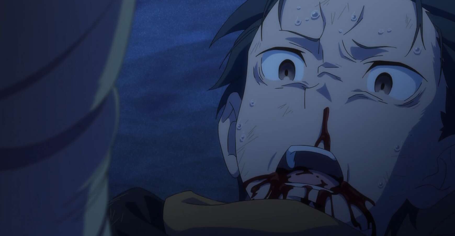 砂ミミズの死体によってスバル達は分断され馬車とはぐれてしまい、その直後に謎の狙撃の2発目がスバルを襲います。パトラッシュがスバルをかばいますが、パトラッシュは即死、スバルも胴体を貫通するほどの致命傷を負い、3発目の狙撃でスバルの側にいたベアトリスも死亡します。