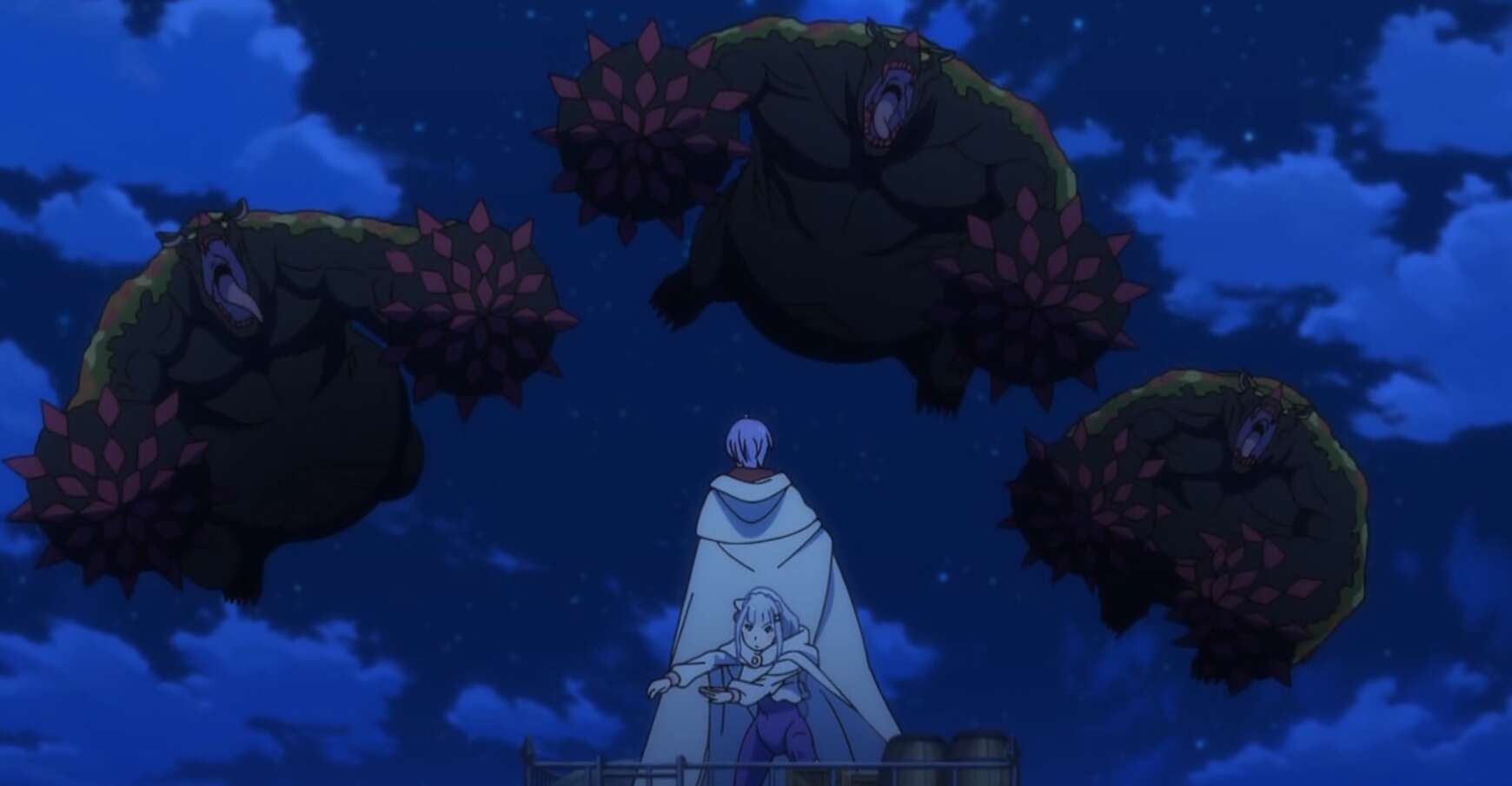 その直後、謎の狙撃がスバルを襲いますが、エミリアの氷の盾やユリウスの剣技で防ぎ、謎の狙撃の正体が針だった事が判明します。その後、さらに針が撃ち出されますがスバルとベアトリスの完全無効化魔法で針を防ぎます。