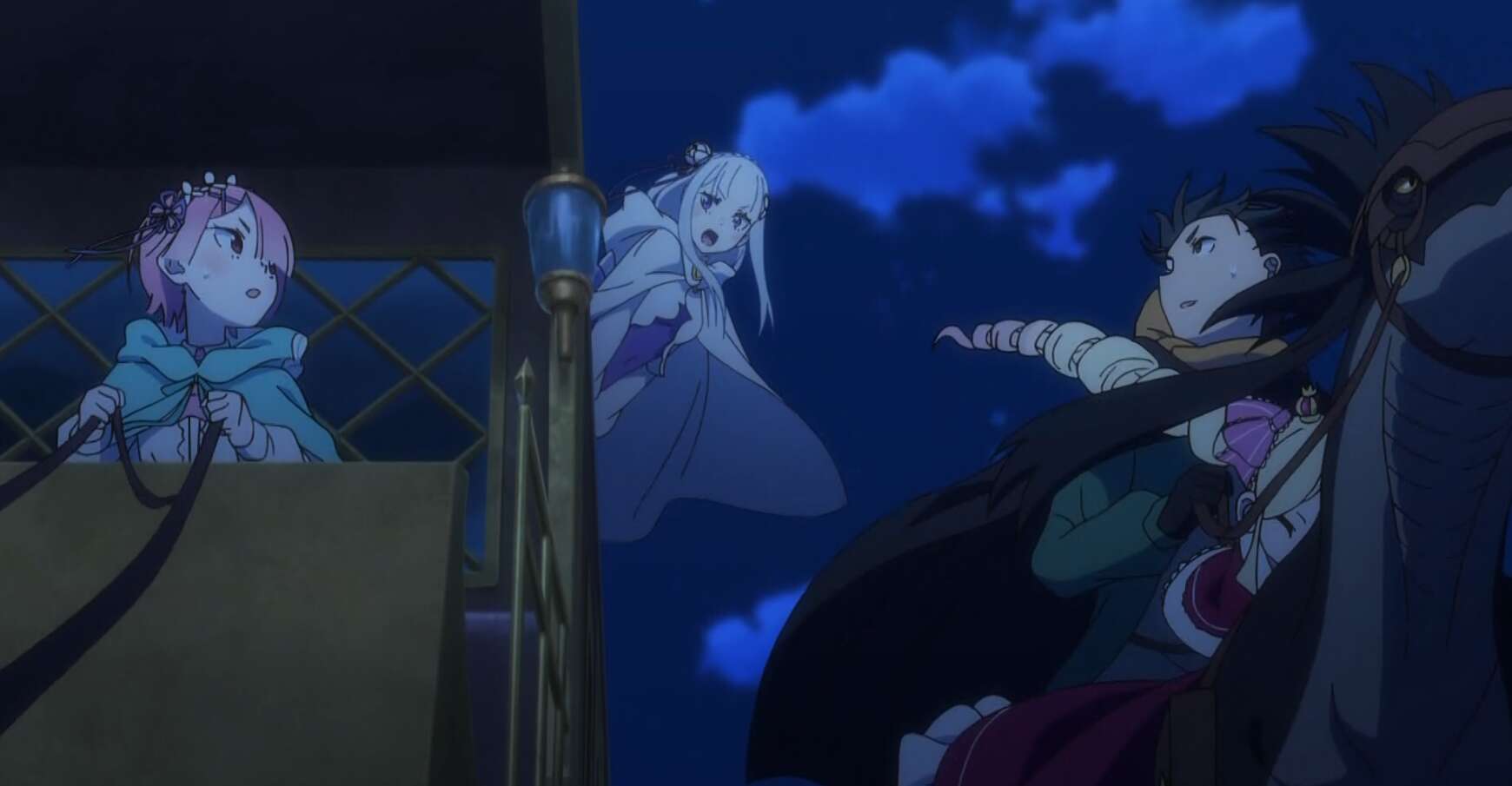 スバルは自分に何が起きたかもよく分からず混乱しますが、場面は花魁熊の群れに強襲される直前に戻っている為、落ち着いて考える時間もなく花魁熊と戦闘になり、スバルは仕方なく再び前回と同じように馬車を突っ走らせます。