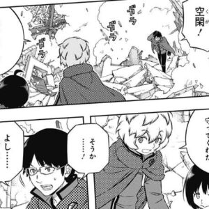 弓場隊はヒュースを動かして生駒隊を狙わせ、隙を作ろうとしますが、ヒュースはエスクードを起動し車を動かし、弓場と帯島に当てます。いきなり別角度から車をぶつけられ、弓場隊は連携を崩されます。