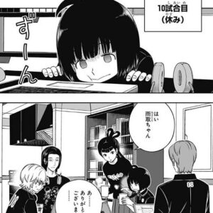 この試験は最終的に分担課題の進み具合で勝負がつくと水上は考えていて、ギリギリまで分担課題をやりつつ、戦闘シミュはピンポイントで対策する、と水上は隊員に説明します。試合直前の1時間だけで4チーム分の対策を仕上げるのでかなりハードルは高く、思った通りハードルが高いと分かり今は難しそうな顔をしますが、水上はこのメンツならいけると思って作戦を立ててる、と隊員に言います。これで間に合わへんかったら、計算ミスったオレの責任や、と水上は言いますが、照屋は、間に合わせてみせますよ!と、自信を見せます。荒船は、プレッシャー掛けんな、とツッコミを入れますが、照屋と同じく自信はありそうです。