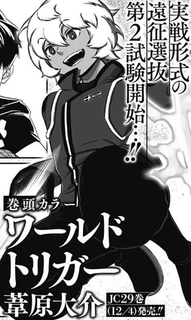 ワールドトリガー 29巻が、12月4日(木曜)発売予定です。第257話まで収録される予定らしいので、第1試験の閉鎖環境試験が最後まで見られます。さらに第2試験の長時間戦闘試験のルール説明も見られると思います。閉鎖環境試験の最終順位では諏訪7番隊が何位になっているか、長時間戦闘試験がどういった試験内容なのかが明らかになりそうです。
