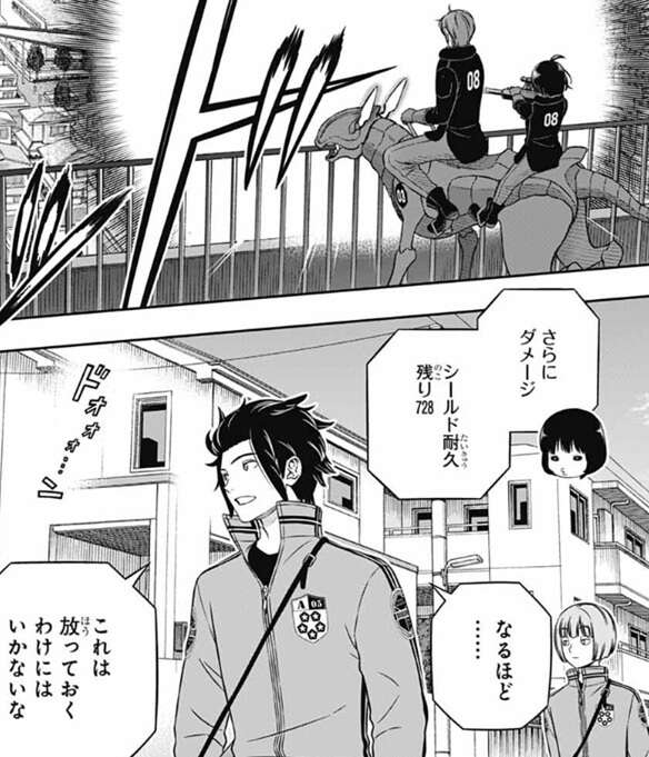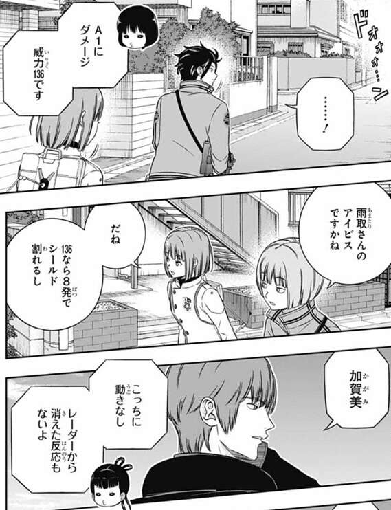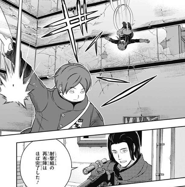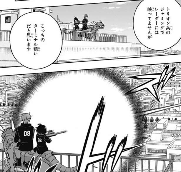後7発でA1ターミナルのシールドを割ることが出来、二宮は加賀美にレーダーにA級部隊の動きがない事を確認すると、雨取にさらにもう一発撃たせます。