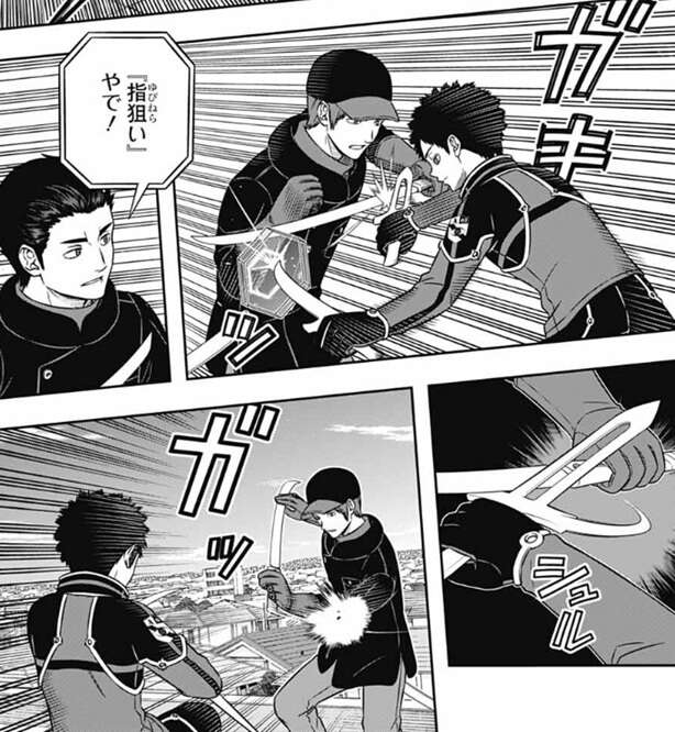 クローニンが使用するトリガーは初登場の『酒袋(フェンガーリ)』で、スコーピオンの元ネタとなったトリガーだそうです。樫尾も始めて見るトリガーで、鞭のようにしなって菊地原や樫尾に襲い掛かります。